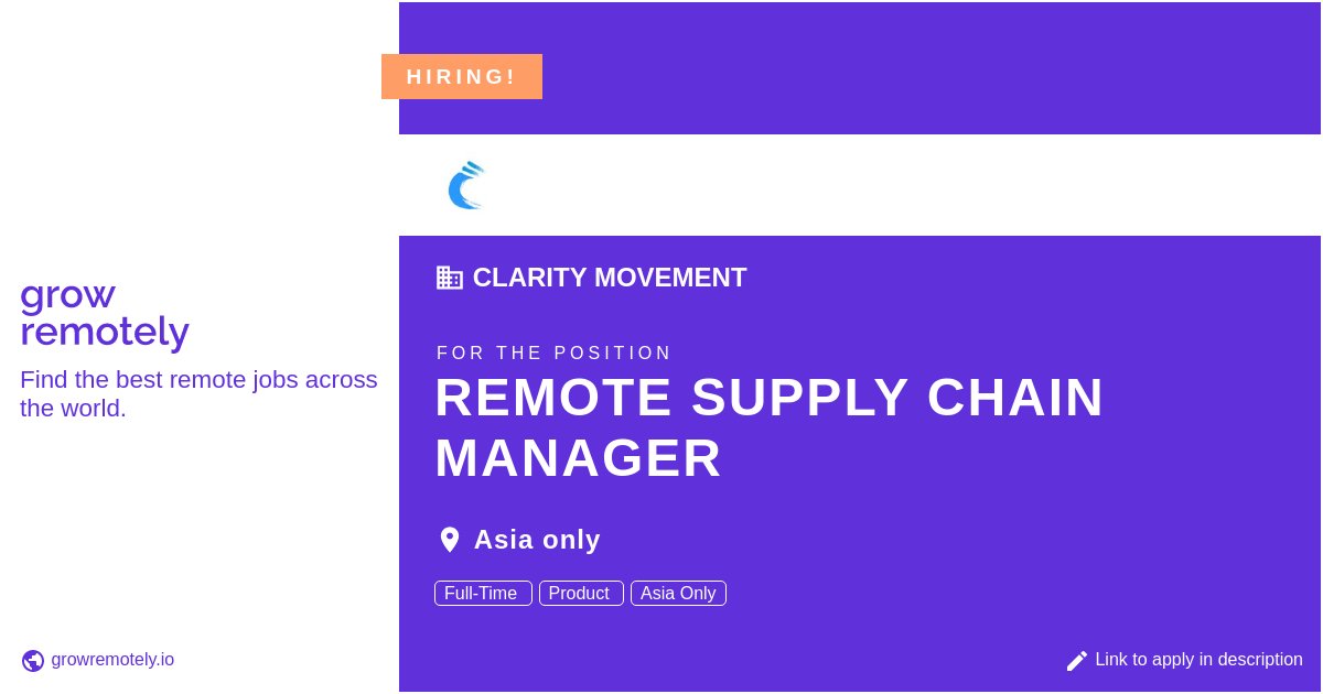 Growremotely On Twitter Check Out This Job At Clarity Movement For The Position Remote Supply Chain Manager Apply Link Https T Co Noa9x9ud6z Hiring Remotejobs Claritymovement Productmanagement Https T Co Bb38hw0rtz Twitter